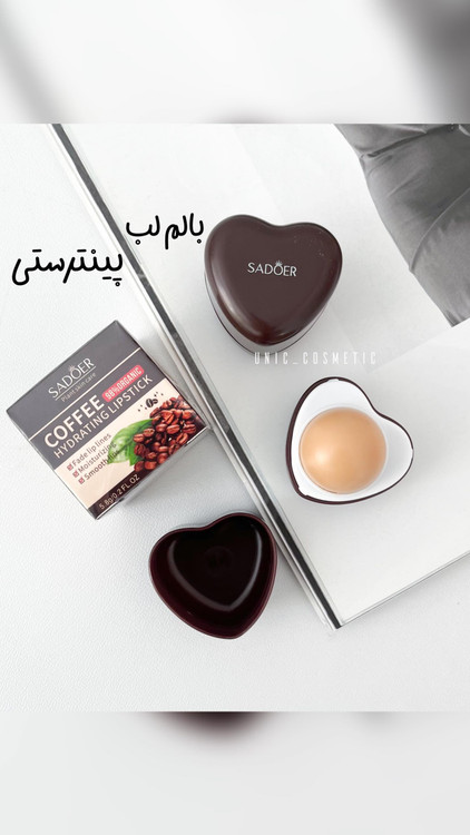 بالم لب اوردم براتون هلووو ببخشید قهوه بوی نسکافه میده اصن دلت ضعف میره بوش میکنی حاوی کافئین و رتینول برای رفع تیرگی و خشکی لب ها عالیه از برند سادورکه محصولات تخصصی تولید میکنه این محصول درمانیه و با بقیه بالم لب ها که اثرشون موقته فرق داره قی اصلی این کار ۸۵ ولی تو یونیک به ۶۵ تخ،ف.یف خورده