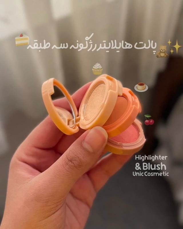 دو رنگ رژگونه کاربردی که یکی رنگ لاو کیک و دیگری هایلایتر جذاب است. حجم موادش زیاد و پیگمنتش فوق العاده بالاست.