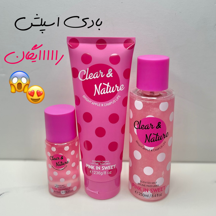 تو کپشن شرایط دریافت یه بادی هده رو نوشتم این بهترین مدل بادی اسپلش تو برند های !قتصادی هست برند پینک این سوییت رایحه ها ادکلنی و ماندگار قبلا ادکلن قلمیش رو داشتیم با کیفیت و رضایت فوق العاده بادی اسپلش فول سایز(۲۵۰ میل) کیفیت عالی و شاینی و یه شاین زیبا به بدنتون میده قی.مت اصلیش ۲۵۰ تو.منه و تو یونیک به ۲۰۵ تو.من تخف.فیف میخوره لوسیون ۲۳۶ گرمی قی.مت اصلی ۱۸۰ تخفف فقط ۱۵۵ حالا اگه شما یه لوسیون و بادی اسپلش بخرد یه بادی کوچولو به قی.مت ۹۸ تو.من از یونیک هده میگیرید به دو نکته توجه کنین بچها بادی های ارزووون تر هم هست تو پج خودمون مثل جین میس که ۷۵ تو.منه ولی خب این برند واقعاااا با کیفیته و به قول یه همکاری آب شکر نریختن توش لوسیون ارزووون تر هم خودمون داریم مثل لوسیون هلو بیواکوا که ۸۹ تو.منه و یا لوسیون یانگمی و لوسیون برنج که !قتصادی ان ما موظفیم که انواع محصولات با کیفیت رو بیاریم و شما بسته به بودجتون انتخاب کنین نکته دوم محصول اورجیناله نکته سوم محصولات گرو.ن همیشه سو..دشون کمتره اینو احتمالا همه میدونن و با این وجود من بخش زیادی از سو.دم رو به کسایی تقدیم میکنم که همیشه هوامون رو داشتن و تو شرایط سخت و آسون و باهامون صبوری کردن امیدوارم شما هم عشق و محبتتون رو به ما بدین که این بیشترین و با ارزش ترین سوده دوستتون دارم